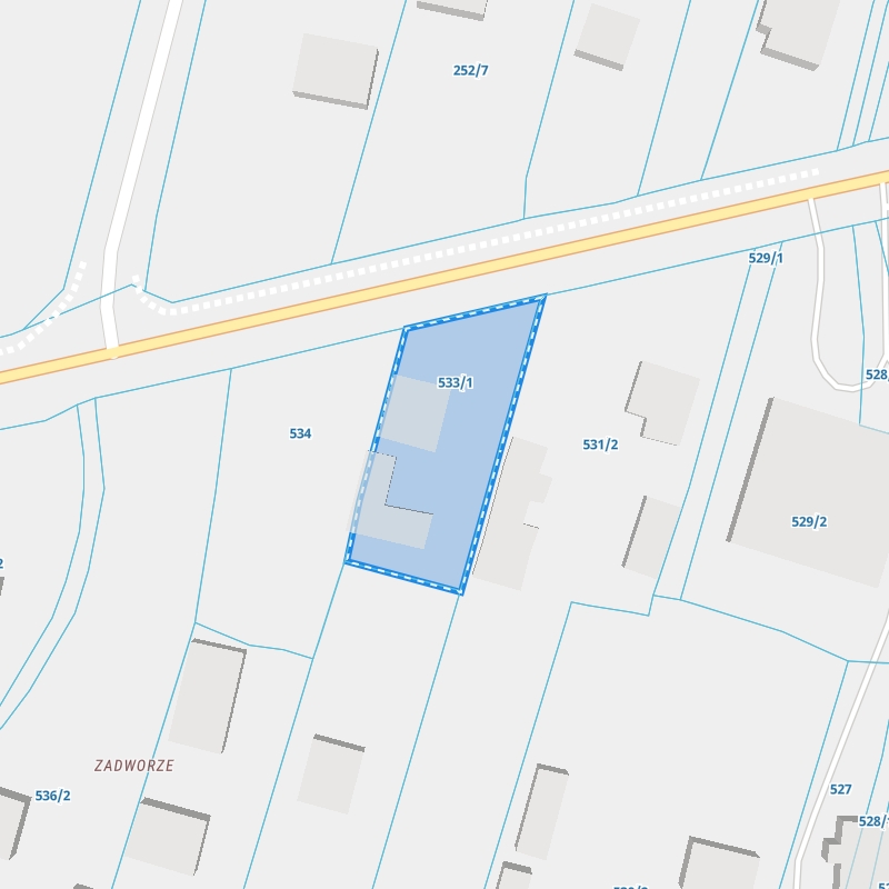 Zobacz przykładowe dane dotyczące Ewidencji Gruntów i Budynków. Działka ewidencyjna urzędu znajduje się przy Wadowice Górne