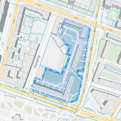 Ryc. 2. Urząd Gminy Warlubie - granice działki urzędu na podstawie wyrysu z Ewidencji Gruntów i Budynków na mapie podkładowej OpenStreetMap