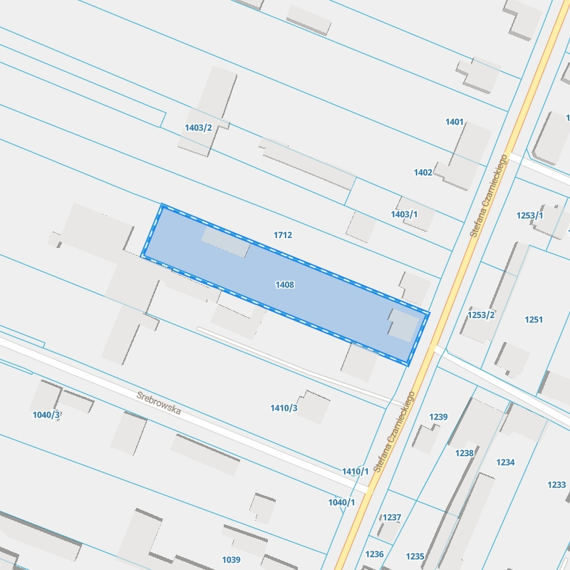 Zobacz przykładowe dane dotyczące Ewidencji Gruntów i Budynków. Działka ewidencyjna urzędu znajduje się przy pl.kpt. Władysława Raginisa 35