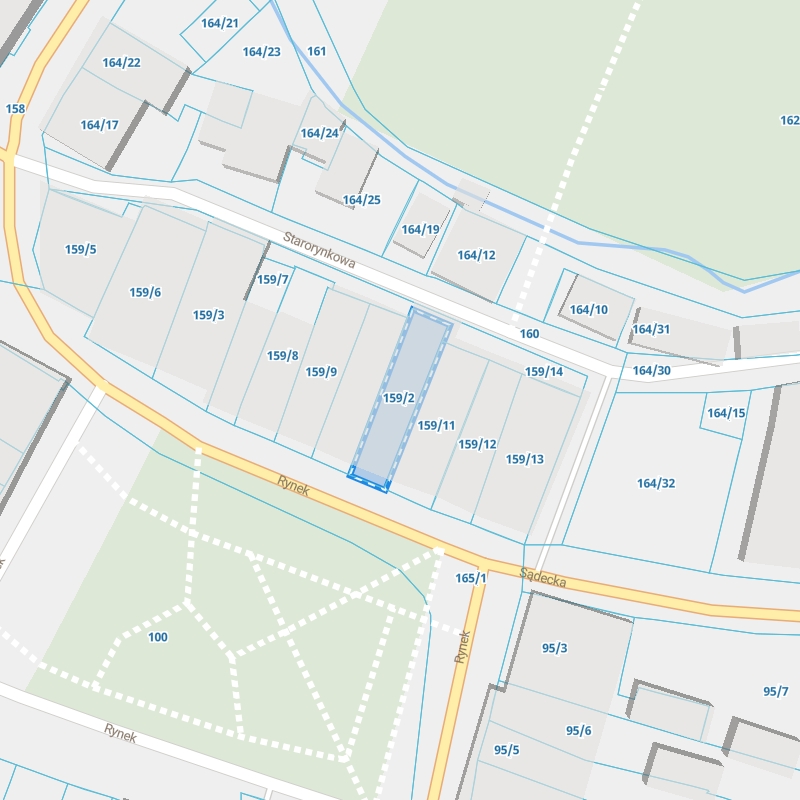 Zobacz przykładowe dane dotyczące Ewidencji Gruntów i Budynków. Działka ewidencyjna urzędu znajduje się przy ul. Rynek