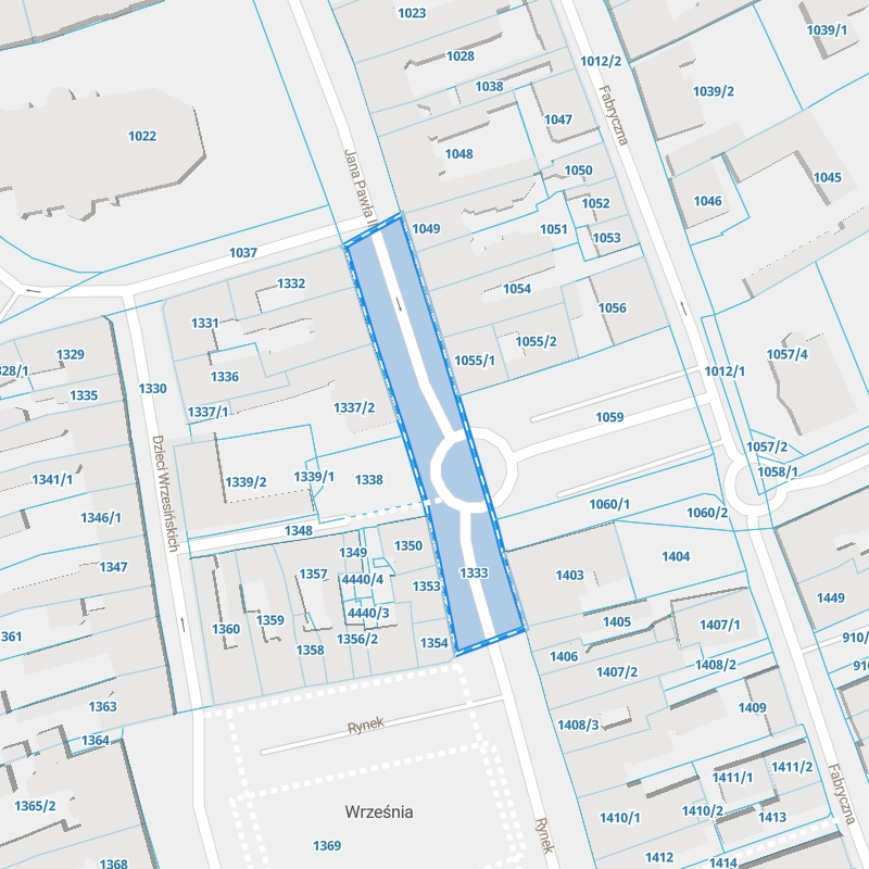 Wyszukaj działkęRyc. 1. Urząd Miasta i Gminy Września - przykładowy wyrys z Ewidencji Gruntów i Budynków na mapie satelitarnej.