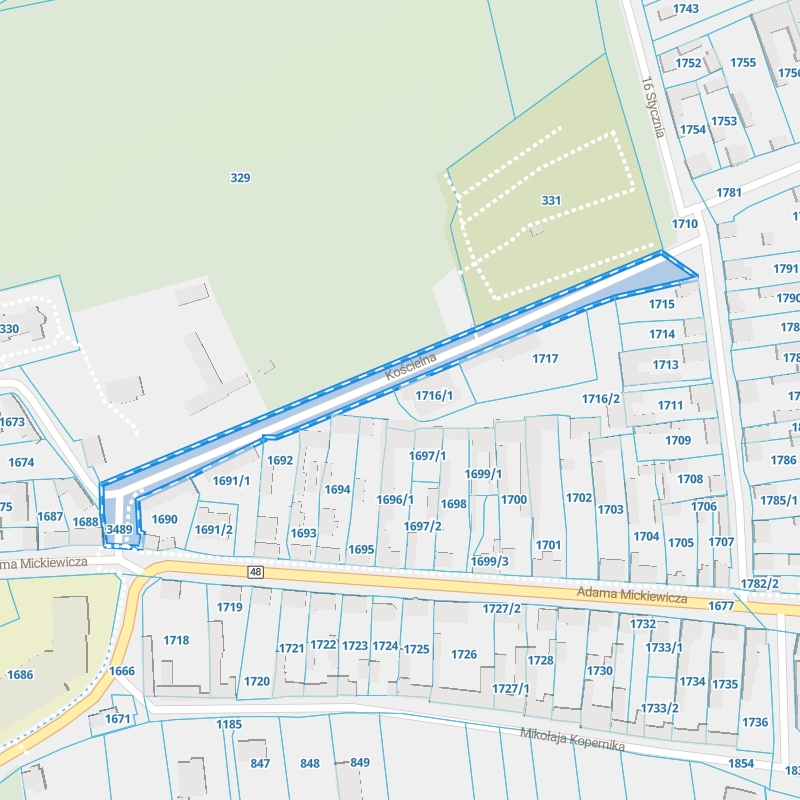 Zobacz przykładowe dane dotyczące Ewidencji Gruntów i Budynków. Działka ewidencyjna urzędu znajduje się przy ul. A. Mickiewicza