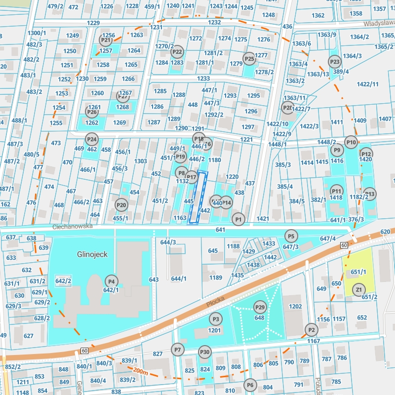 Wyszukaj swoją działkę na mapie w Geoportalu Glinojeck. Twórz raporty o wybranym terenie w wersji PDF oraz na mapie interaktywnej. Prześwietl swoją działkę pod kątem ponad 20 aspektów.