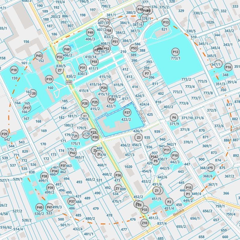 | Numery działek | 422/2 |