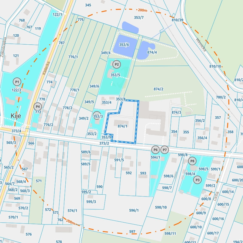 Wyszukaj swoją działkę na mapie w Geoportalu Kije. Twórz raporty o wybranym terenie w wersji PDF oraz na mapie interaktywnej. Prześwietl swoją działkę pod kątem ponad 20 aspektów.