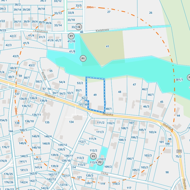 Zobacz przykładowe dane z raportu o działce. Działka znajduje się przy ul. Słupska 56.