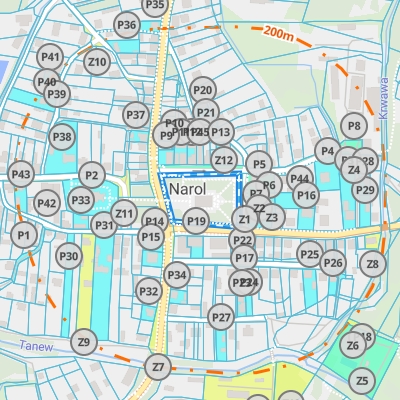 Ryc. 1. Urząd Miasta i Gminy Narol - mapa pozwoleń i zgłoszeń budowlanych w okolicy.