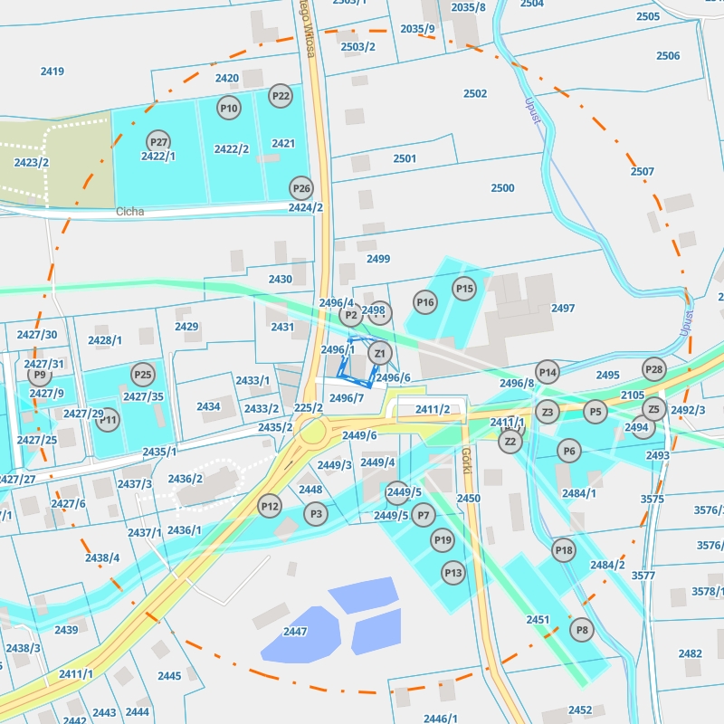 Numery działek | 22/5, 2496/1, 2496/7, 2498, 2496/2, 2496/5 |
