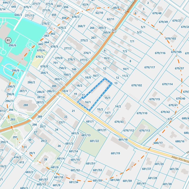 Zobacz przykładowe dane z raportu o działce. Działka znajduje się przy Al. 900-Lecia 3.