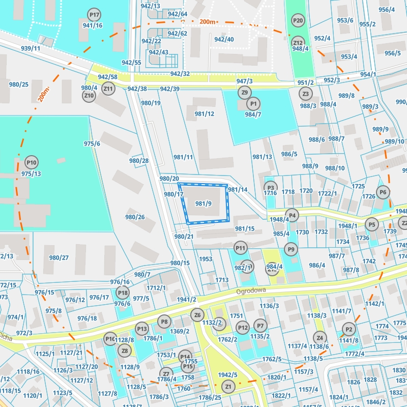Zobacz przykładowe dane z raportu o działce. Działka znajduje się przy ul. Warszawska 40.