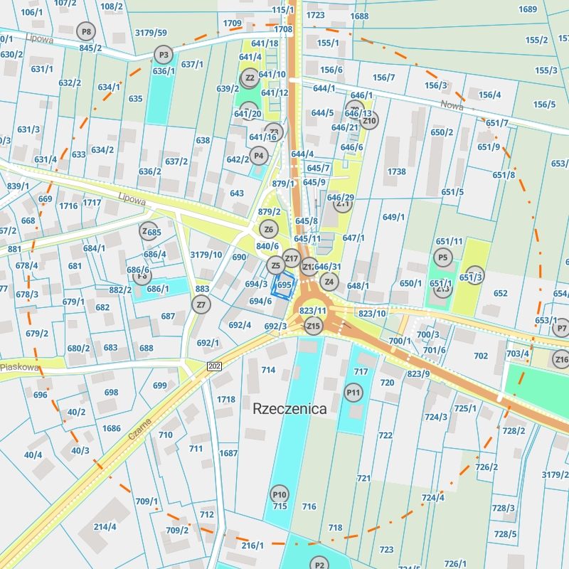 | Numery działek | 694/1, 694/6, 695, 823/11 |