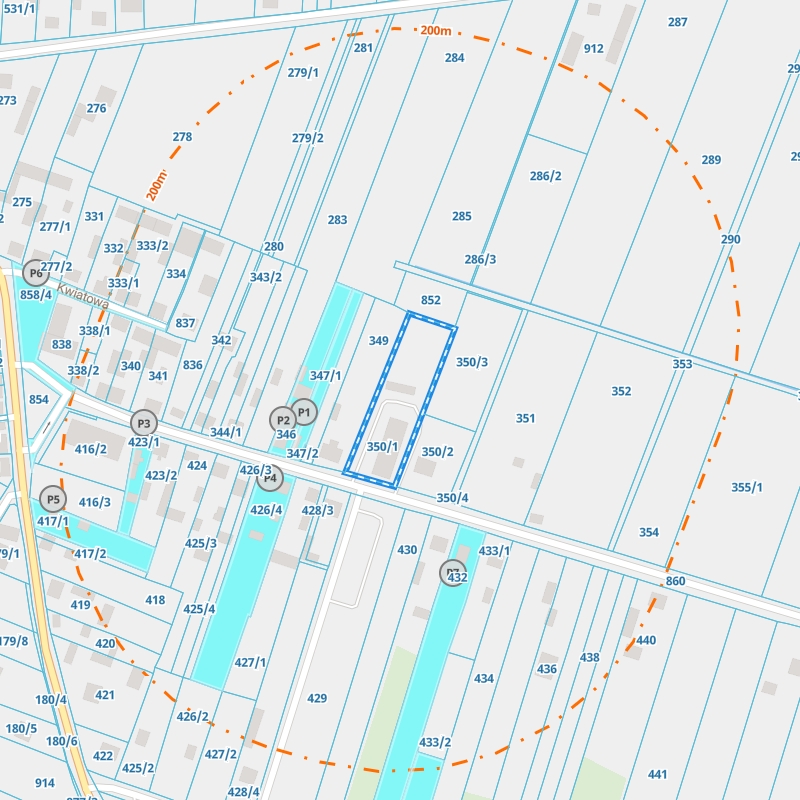 | Numery działek | 350/1 |