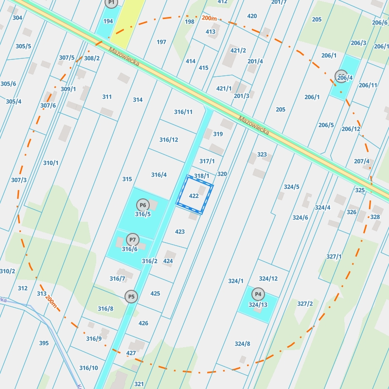 Zobacz przykładowe dane z raportu o działce. Działka znajduje się przy Mazowiecka 61.