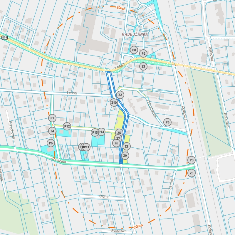 P1. budowa drogi gminnej ul. Klonowa na odcinku A-B od km 0+000 do km 0+170, C-D od km 0+000 do km 0+193,34, budowa drogi gminnej ul. Leśna na odcinku od km 0+000 do km 0+271,68, budowa drogi gminnej ul. Odrodzenia na odcinku od km 0+000 do km 0+185,50 z przebudową i zabezpieczeniem kolidującej sieci elektroenergetycznej