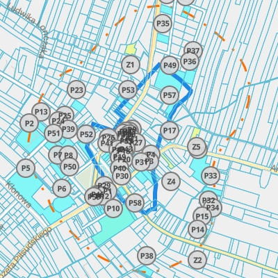 Ryc. 1. Urząd Miasta Zamość - mapa pozwoleń i zgłoszeń budowlanych w okolicy.