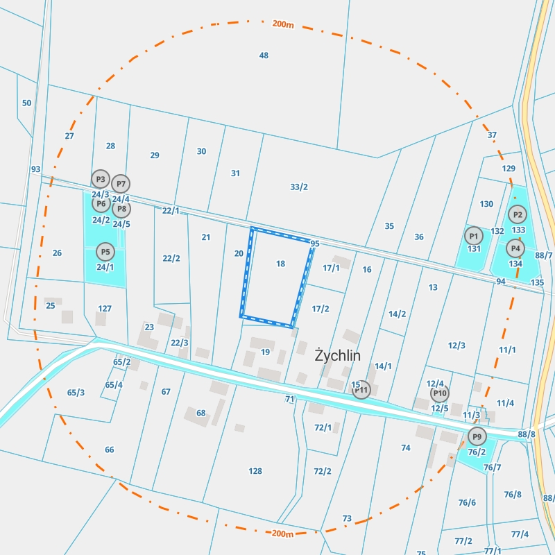 Wyszukaj swoją działkę na mapie w Geoportalu Żychlin. Twórz raporty o wybranym terenie w wersji PDF oraz na mapie interaktywnej. Prześwietl swoją działkę pod kątem ponad 20 aspektów.