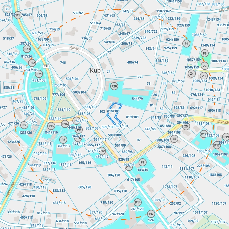 Zobacz przykładowe dane z raportu o działce. Działka znajduje się przy ul. Rynek 2.