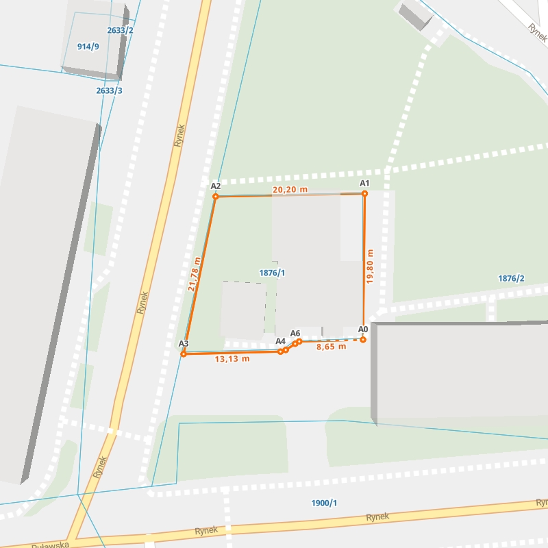 | A1 ← 51.55801585, 22.13562048 | A2 | 20,20 m |