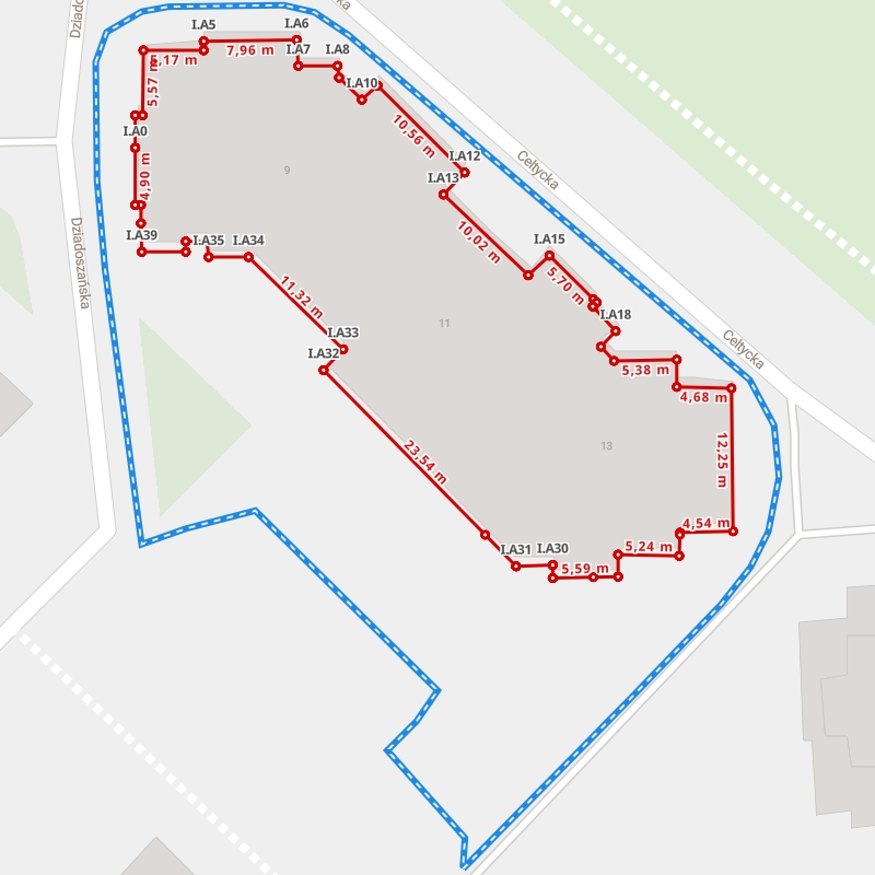 | A9 ← 51.13722846, 16.98113098 | A10 | 11,38 m |