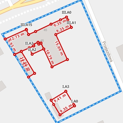 Wymiary budynku na mapie interaktywnej 3D