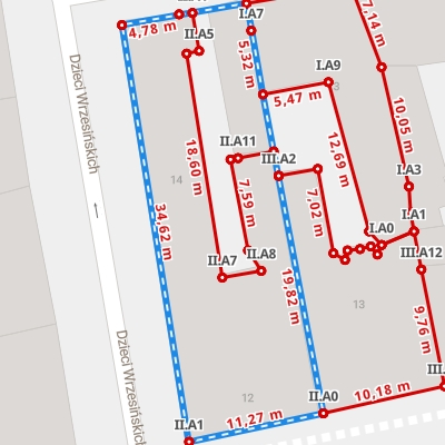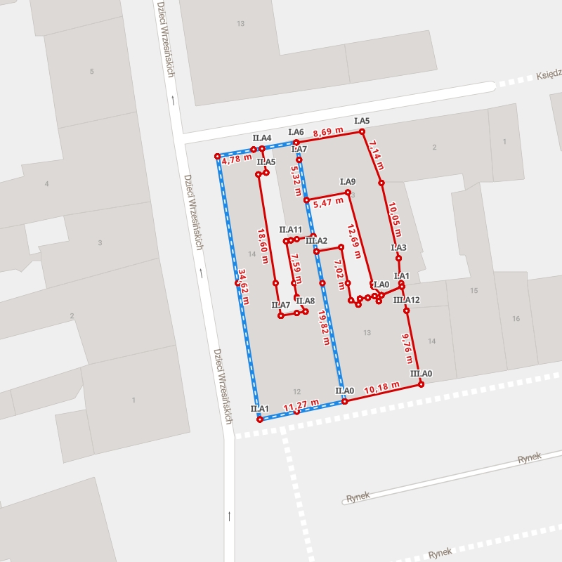 Wymiary budynku na mapie interaktywnej 3D