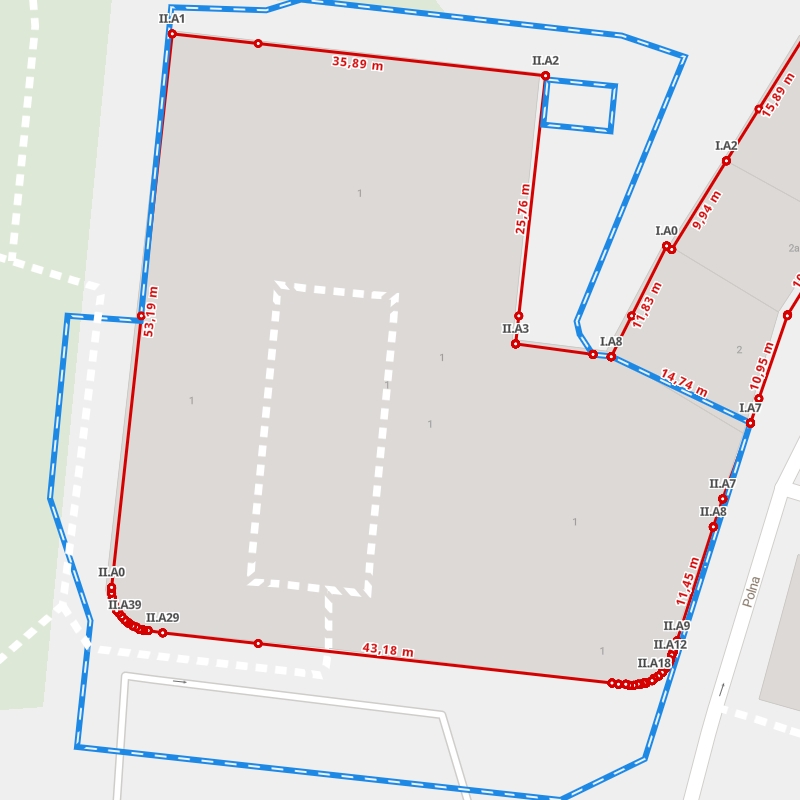 | A1 ← 51.2626089, 15.56918693 | A2 | 13,21 m |