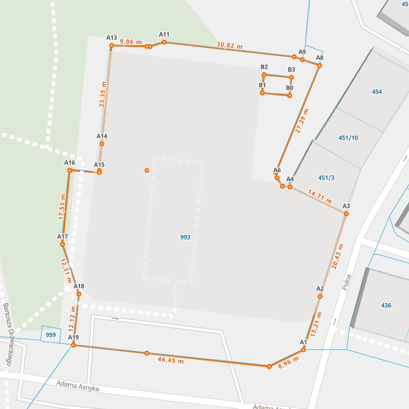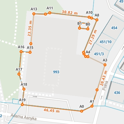 | A19 ← 51.26261916, 15.56840848 | A0 | 46,45 m |