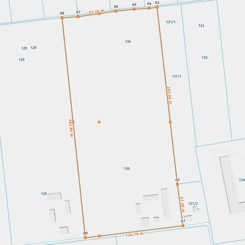 | A0 ← 51.06673158, 22.28137427 | A1 | 134,79 m |