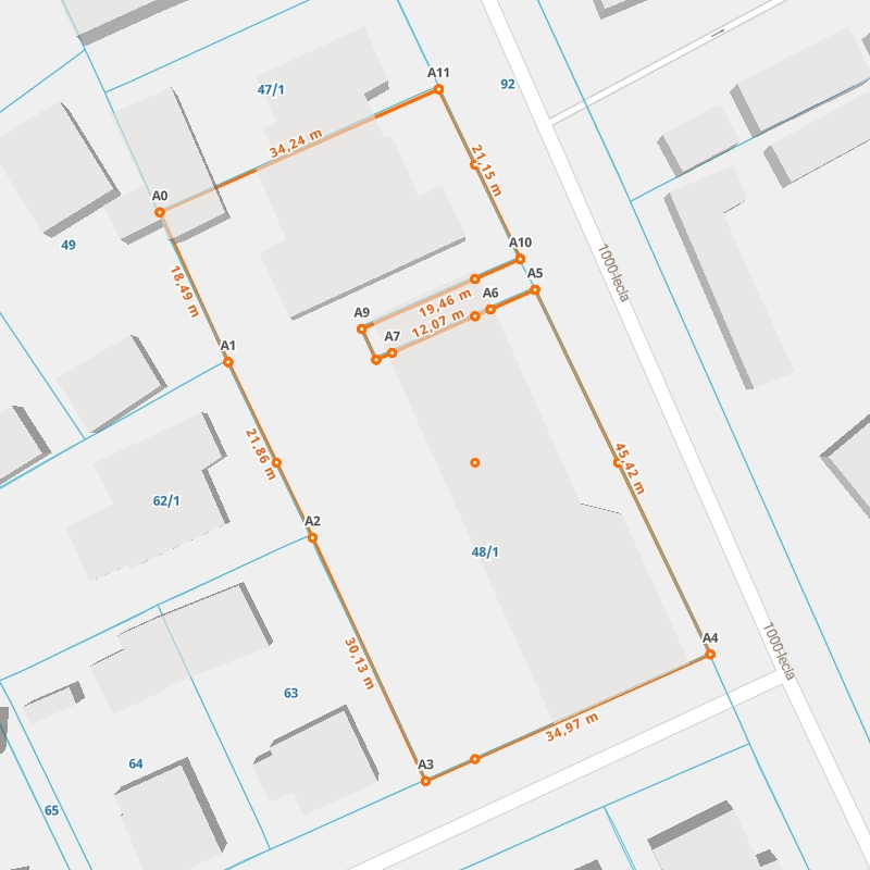 | A0 ← 51.59417439, 18.25567556 | A1 | 18,49 m |