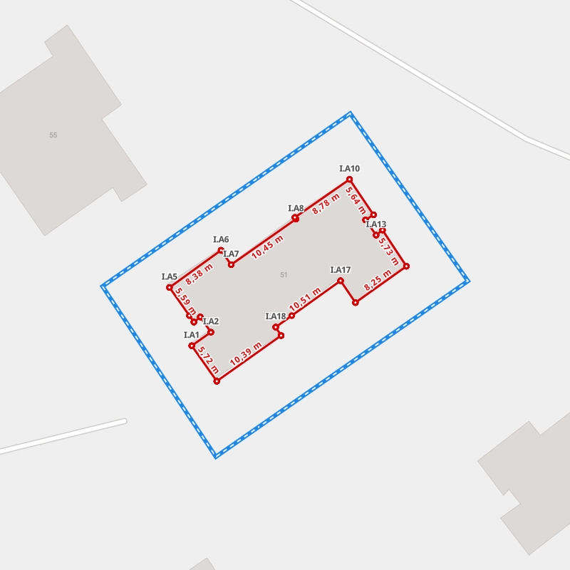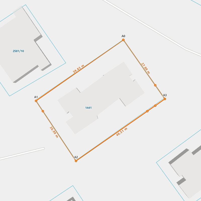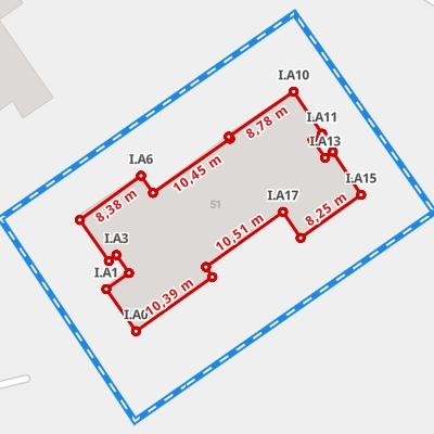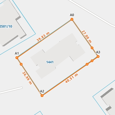 | A1 ← 51.01486927, 22.5381589 | A2 | 26,99 m |
