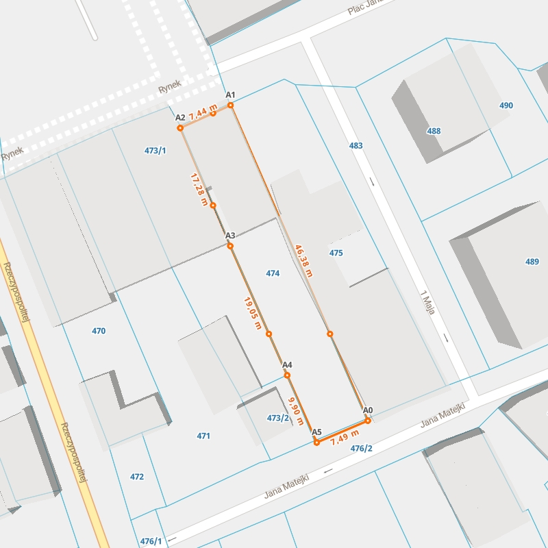 | A1 ← 51.78617275, 16.66801069 | A2 | 7,44 m |