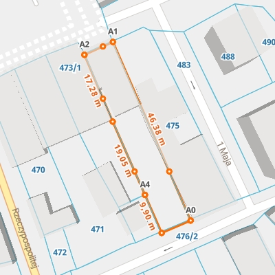| A0 ← 51.78579071, 16.6682795 | A1 | 46,38 m |