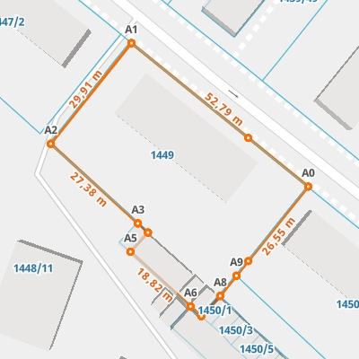| A0 ← 52.88116421, 20.60025885 | A1 | 52,79 m |