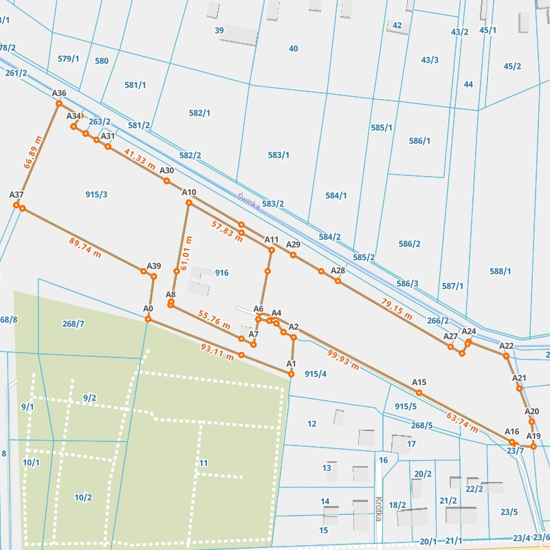 | A0 ← 51.30546043, 23.12678029 | A1 | 93,11 m |