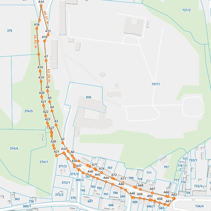 A6 ← 52.39577379, 20.30857893 | A7 | 53,20 m |