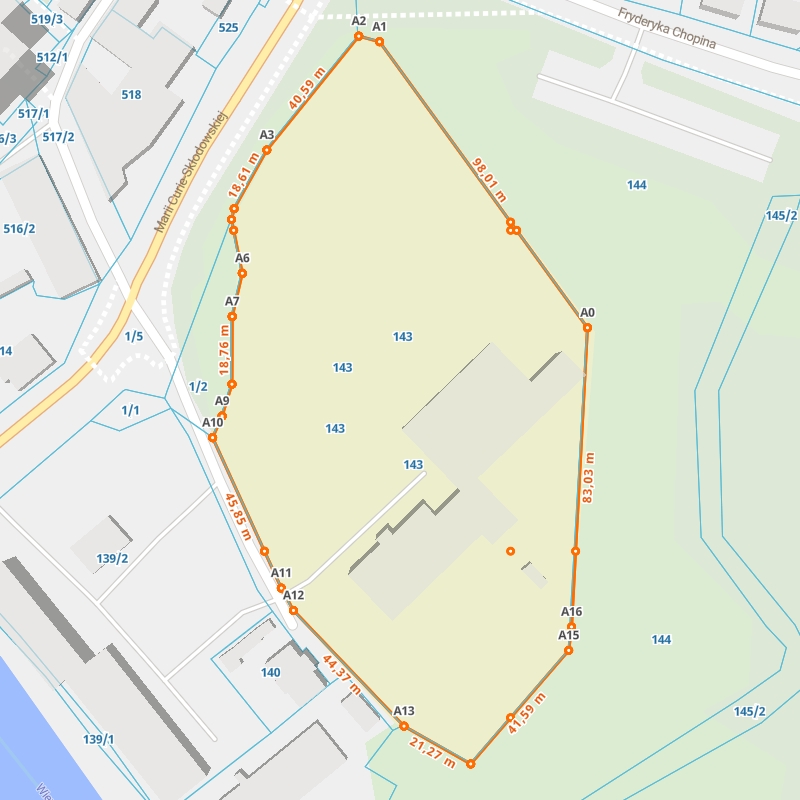 | A0 ← 54.41908683, 16.41458971 | A1 | 98,01 m |