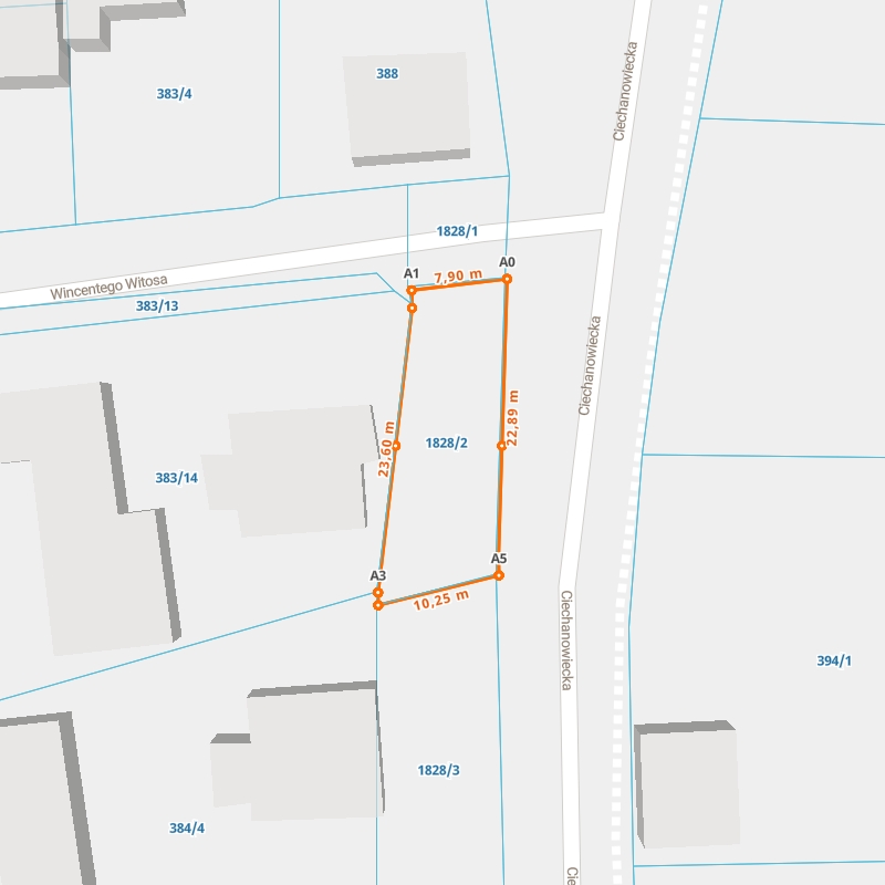 | A0 ← 52.39772435, 22.65681511 | A1 | 7,90 m |