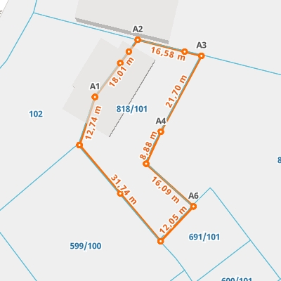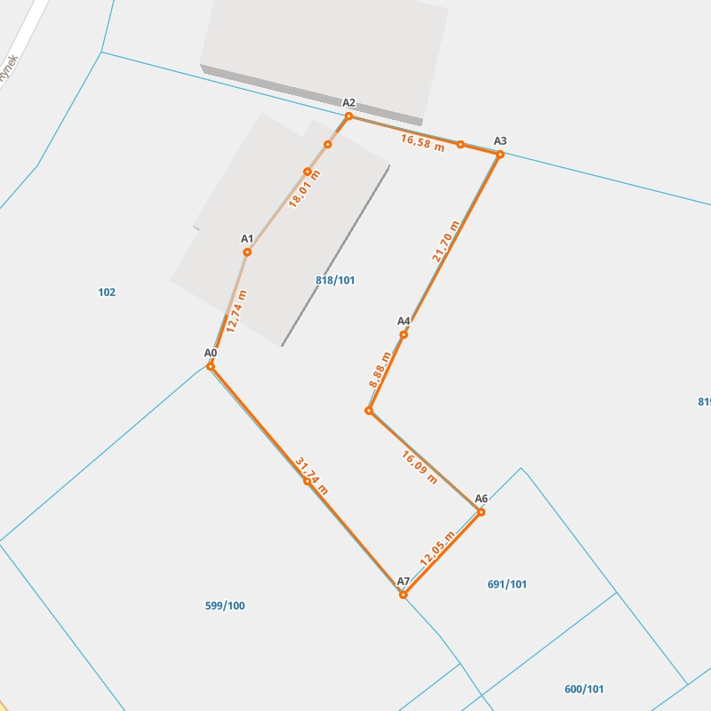 | A1 ← 50.80604896, 17.88462143 | A2 | 18,01 m |
