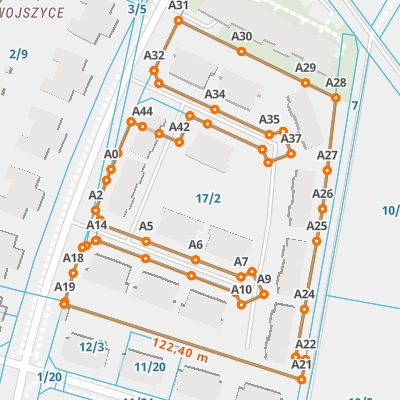 | A22 ← 51.05918584, 17.04375471 | A23 | 5,00 m |