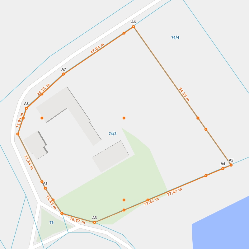 | A8 ← 53.28189099, 17.81866352 | A0 | 15,05 m |
