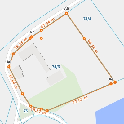 | A3 ← 53.28131972, 17.81923435 | A4 | 77,62 m |