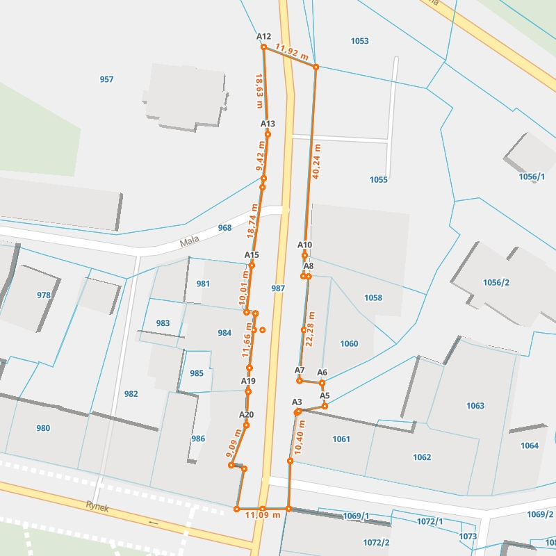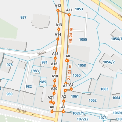 | A20 ← 51.02847367, 18.42299308 | A21 | 9,09 m |