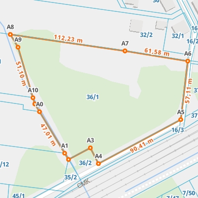 | A7 ← 52.10548731, 20.60524653 | A8 | 112,23 m |