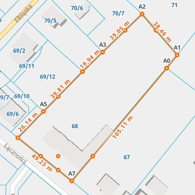 A6 ← 54.08811024, 19.30734488 | A7 | 49,23 m |