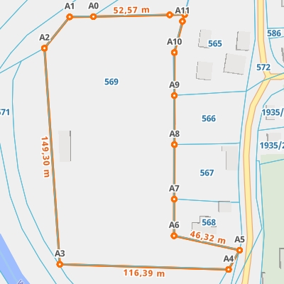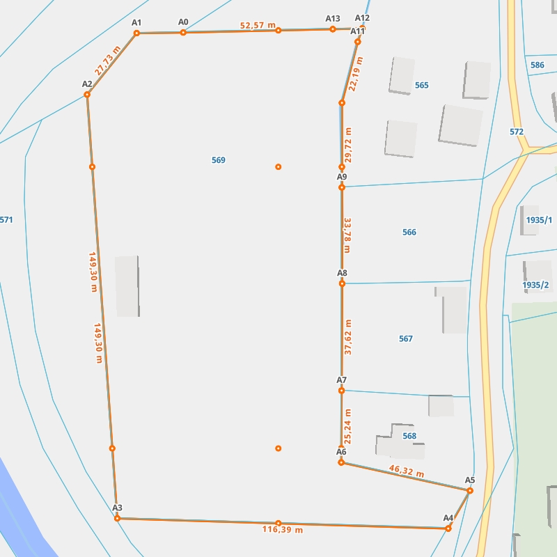 | A0 ← 49.67205147, 21.89185471 | A1 | 16,38 m |