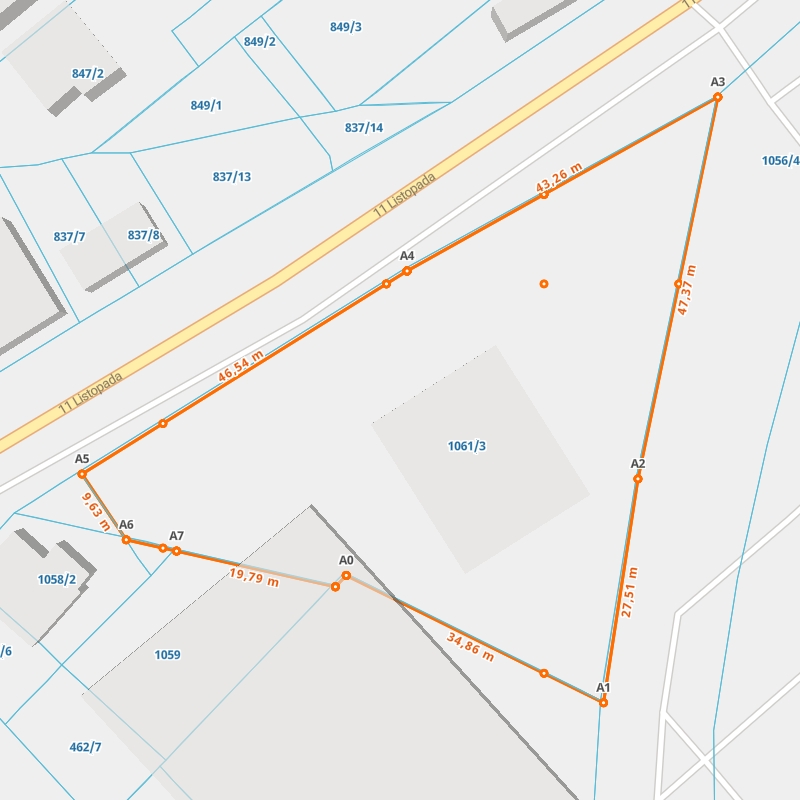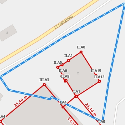 | A0 ← 52.74158585, 23.58626018 | A1 | 34,86 m |