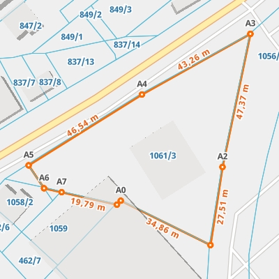 | A3 ← 52.74210772, 23.58692989 | A4 | 43,26 m |