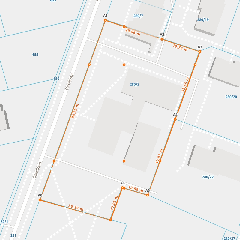| A6 ← 51.40187156, 23.40876341 | A7 | 17,05 m |