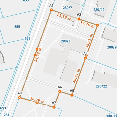 | A7 ← 51.40172787, 23.40867848 | A0 | 36,29 m |