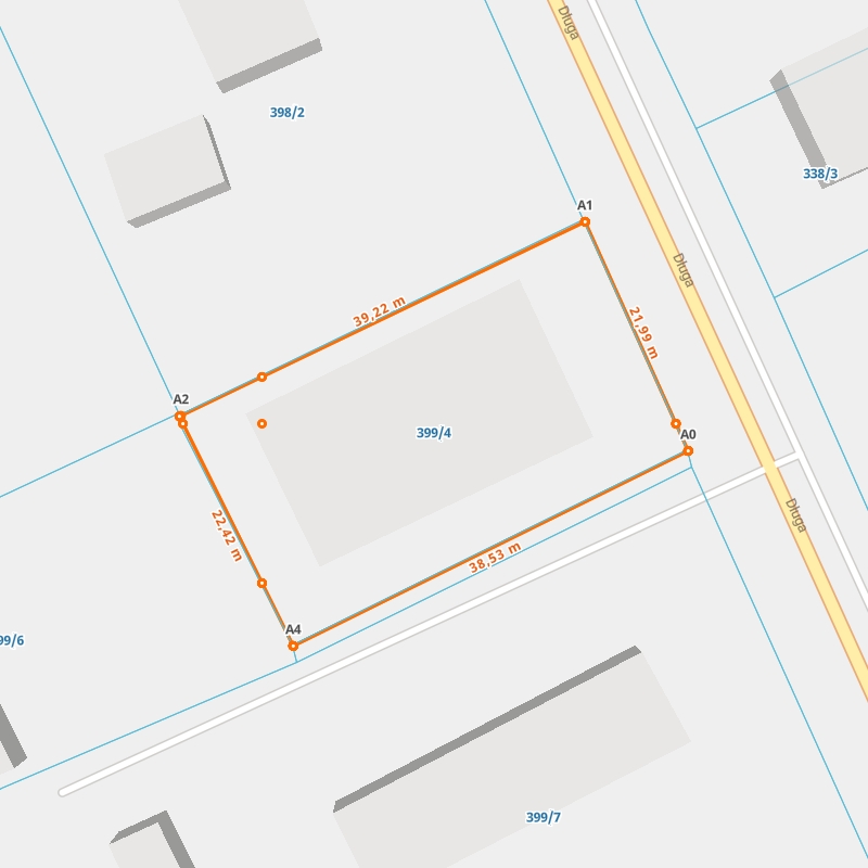 | A1 ← 50.52428158, 22.45199079 | A2 | 39,22 m |